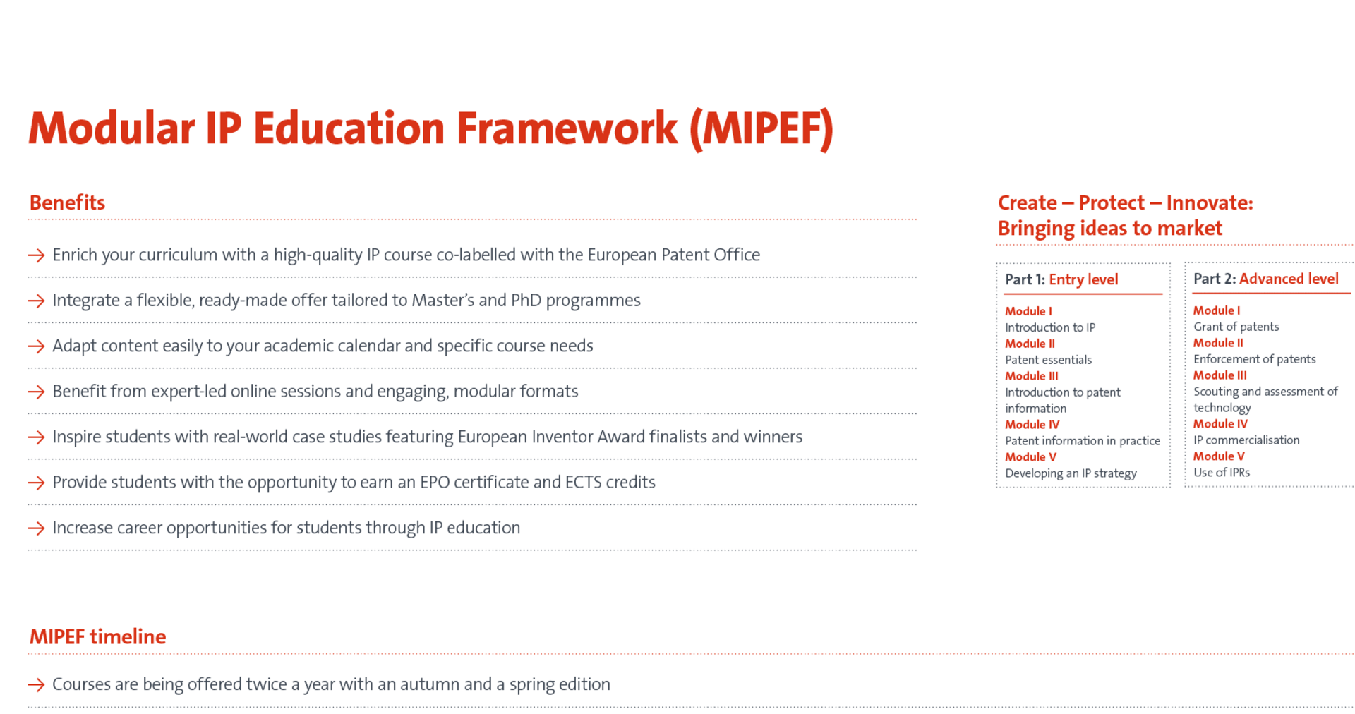 The course of the European Patent Office „Create – Protect – Innovate: Bringing ideas to market" is available for all employess, master students, and PhD-students as well as post-docs free of costs and include all the important topics around intellectual properties.
