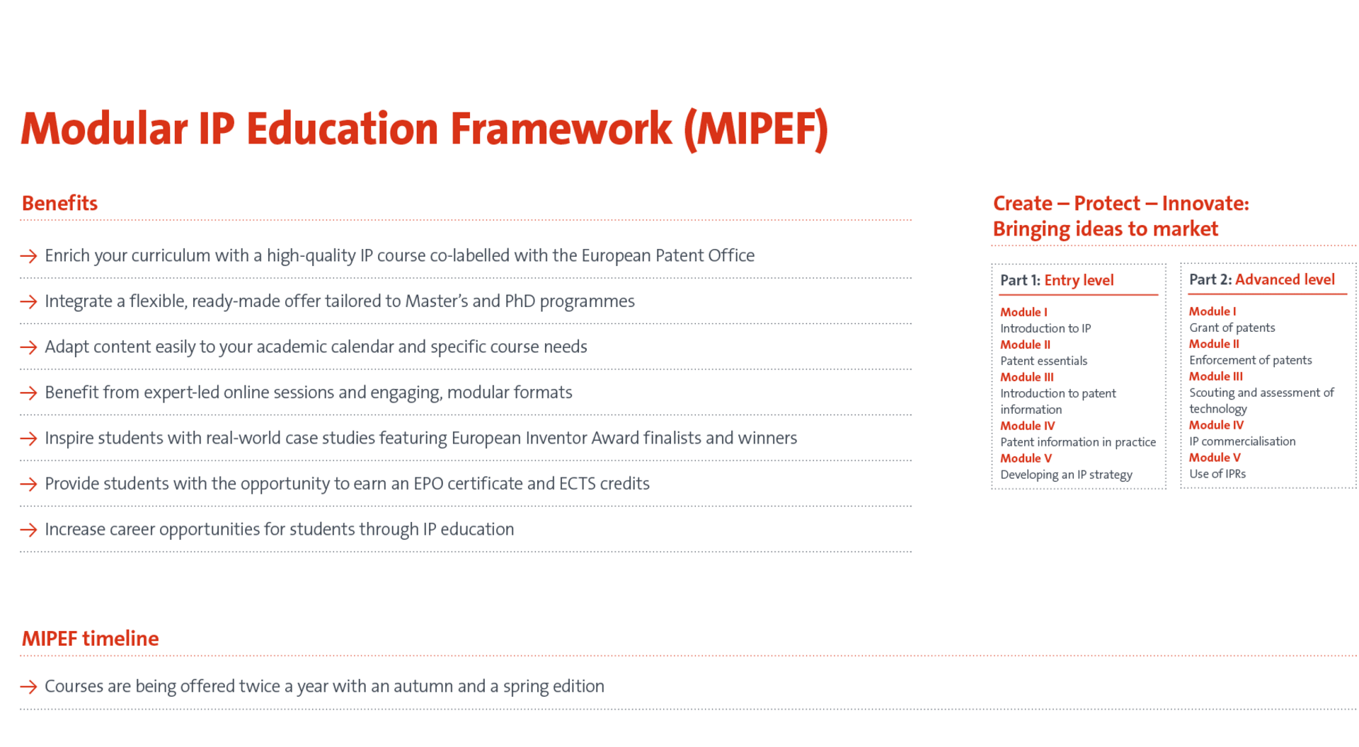 Dadurch erhalten Absolventen und Studierende der MUL Zugang zu ca. 100 Traineeships beim EPO und EUIPO - die dem Einstieg in eine Karriere als Experte bei diesen Organisationen dienen.